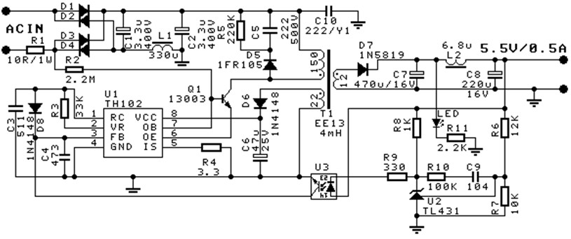 應用指南:某款充電器部品清單,輸出5.5V