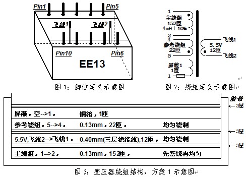 注:主繞組電感,4mH±10% ;飛線1、飛線2線頭長15mm,并有5mm浸錫;