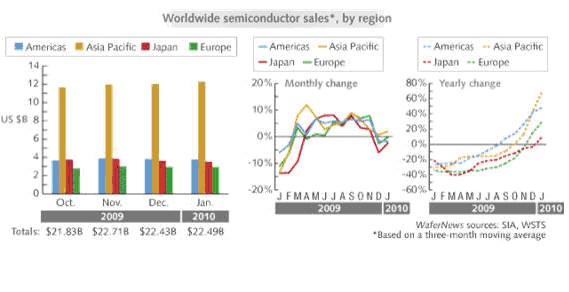 Semiconductor International 全球1月半導體的銷售額數據出籠,讓分析師們的眼睛一亮,紛紛提高2010年的預測。為什么如此迫不及待,值得思考。