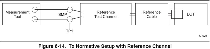 在USB3.0的TX的眼圖和抖動測試中,測量的是待測試信號經(jīng)過參考測試信道后TP1點的眼圖和抖動。如圖5中的Reference test channel即為參考測試信道,在規(guī)范中定義了long channel、short channel和3米電纜三種參考測試信道。如果使用long channel或者較長電纜,信號到達接收端時衰減比較大,眼圖已經(jīng)閉合,USB3.0芯片接收端使用了CTLE均衡器對信號進行均衡后,信號眼圖的質(zhì)量將大大改善,所以要求測試儀器分析出CTLE均衡器處理后信號的眼圖和抖動。目前業(yè)界常用的是Intel的11英寸背板和3米USB電纜作為參考信道。