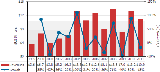 今年許多擴(kuò)廠及新建的Fab廠計(jì)劃設(shè)備將在2011年設(shè)置完成,但相對(duì)也埋下一些隱憂,屆時(shí)產(chǎn)能全部開出時(shí),需求成長(zhǎng)率將必須維持在高點(diǎn),否則將有供過于求的風(fēng)險(xiǎn)。