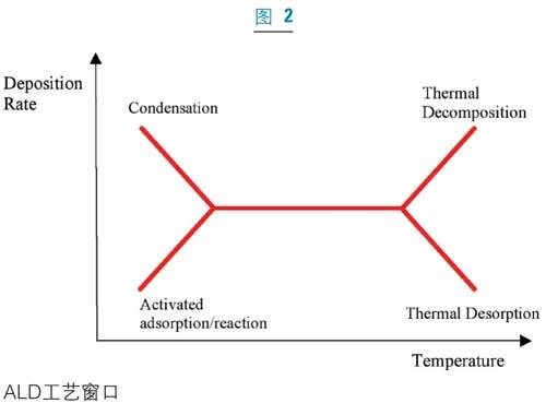 [page]由于ALD是基于在交互反應(yīng)過(guò)程中的自約束性生長(zhǎng),此工藝必須經(jīng)過(guò)精細(xì)的調(diào)節(jié)來(lái)達(dá)到最合適的結(jié)果。即使原子層淀積唯一的表面反應(yīng)特征降低了正常化學(xué)氣相淀積對(duì)溫度、壓力和組分的嚴(yán)格要求,人們?nèi)匀恍枰獌?yōu)化ALD的參數(shù)以實(shí)現(xiàn)其準(zhǔn)確的厚度控制和超級(jí)的保型性。反應(yīng)室溫度是用來(lái)控制表面飽和的重要參數(shù)之一,作為ALD的基礎(chǔ),反應(yīng)室溫度起著兩個(gè)主要作用:提供原子層淀積反應(yīng)所需的激活能量和幫助清除單原子層形成過(guò)程中的多余反應(yīng)物和副產(chǎn)品。單原子層形成最理想的ALD溫度窗口,如圖2所示。ALD工藝窗口與反應(yīng)物的選擇、用量以及清除息息相關(guān)。為了獲得完全的單層覆蓋,足量的具有熱穩(wěn)定性的反應(yīng)物,即在反應(yīng)溫度下不會(huì)分解的反應(yīng)物,被引入到襯底上。人們往往使用過(guò)量的反應(yīng)物來(lái)確保實(shí)現(xiàn)完全覆蓋。通常采用以下幾種參數(shù)來(lái)控制反應(yīng)物的劑量:反應(yīng)物源的溫度、流量、分壓以及這個(gè)反應(yīng)室的壓力。