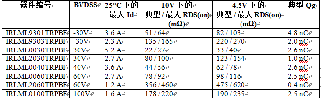新款SOT-23 MOSFET 器件采用IR最新的中壓硅技術,通過大幅降低90% RDS(on)顯著改善了電流處理能力,為客戶的特定應用優化了性能及價格。
