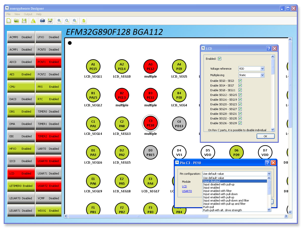 節能微控制器公司Energy Micro®最近推出了一種免費的軟件工具,用以消除調試I / O引腳沖突時產生的傳統的費時問題。energyAware Designer支持完整的EFM32 Gecko低功耗MCU系列,確保正確的引腳配置并自動生成設置代碼和文檔。