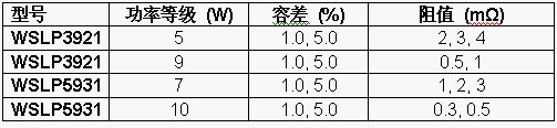 新款WSLP Power Metal Strip電阻: