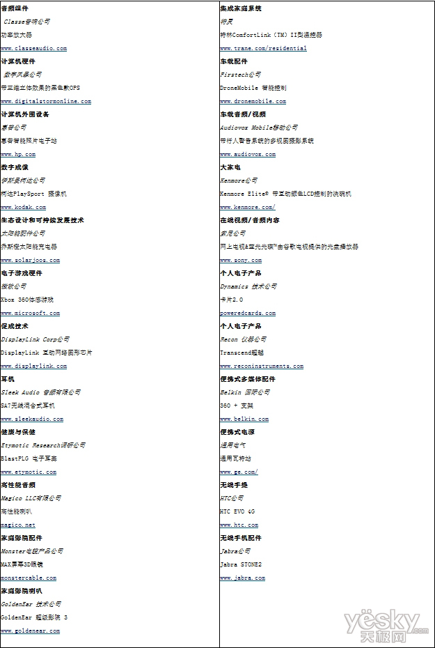 最佳創(chuàng)新設計與工程獎名單公布 (CES2011)