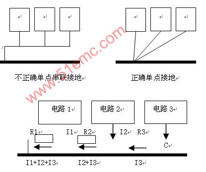 ●設計PCB時,使干擾電流不通過公共的接地回路影響其它電路;