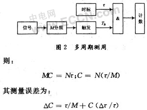 觸發誤差的抑制傳感器輸出的信號為矩形波信號由原始振蕩信號經整形得到,信號中疊加的噪聲在整形時會使矩形波信號的觸發沿提前或滯后。多周期測周時使相鄰周期的觸發誤差相互抵消。M個周期的累計觸發誤差只相當于單個周期的觸發誤差。