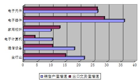 電子元件行業保持較快增長。1-2月,電子元件行業實現銷售產值和出口交貨值1754億元和945億元,分別增長26.4%和26.2%,均高出行業平均水平。