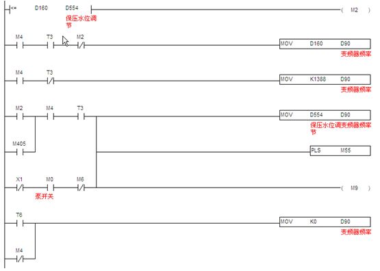 3.2.3通訊程序:臺達SS PLC提供兩個通訊口。本文中,SS PLC的COM1口已與觸摸屏通訊,所以利用SS PLC的COM2 通訊口(此通訊口接口是RS485),支持MODBUS通訊便利指令,編通訊程序像編順序邏輯程序一樣簡單,讓對通訊底層不是很了解的人也能快速上手??焖倬帉慚ODBUS通訊程序,控制如臺達全系列產品,如變頻器、溫控器、伺服等產品。見圖10。
