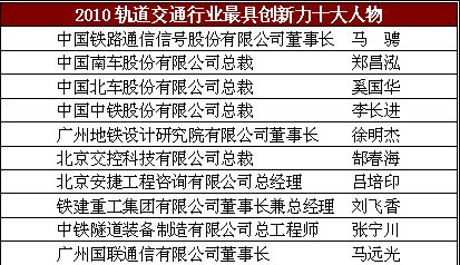 2011年中國(guó)軌道交通行業(yè)步入一個(gè)井噴式發(fā)展的新階段,中國(guó)已經(jīng)成為世界最大的軌道交通市場(chǎng)。眾多企業(yè)是如何與時(shí)俱進(jìn)不斷創(chuàng)新?行業(yè)又該如何記錄那些不囿于桎梏勇于創(chuàng)新的先進(jìn)?總結(jié)本年度在軌道交通行業(yè)勇于創(chuàng)新的企業(yè)和人物,由RT《軌道交通》雜志的主辦2011年度軌道交通創(chuàng)新力企業(yè)TOP50評(píng)價(jià)活動(dòng),將向業(yè)界隆重推出以智慧和膽識(shí)譜寫創(chuàng)新篇章的軌道交通先驅(qū)!