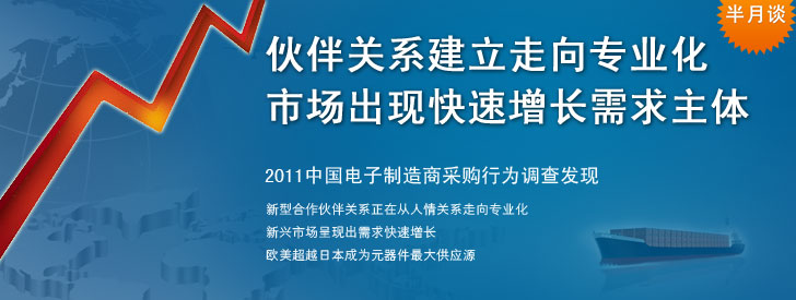 缺貨危機過后,中國電子系統(tǒng)制造商和電子元器件供應商對風險共擔、利益共享的伙伴關系有了新的理解。 2011中國電子制造商采購行為調(diào)查發(fā)現(xiàn),在供應商認證與引入過程中建立了系統(tǒng)流程并很好實施的比例顯著增加;讓供應商參與早期產(chǎn)品設計的比例顯著增加;培養(yǎng)供應商的比例顯著增加。合作伙伴關系建立正在從人情關系走向更加專業(yè)化和系統(tǒng)化。此外,新興市場在新型伙伴關系基礎上呈現(xiàn)出需求快速增長。