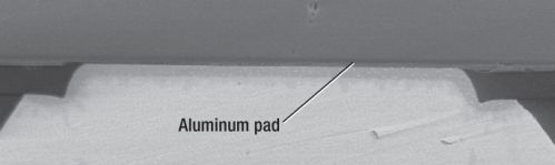 設計。WCSP 供應商在從焊盤到區域陣列范圍 (area array pattern) 的什么地方構建布線所需的 RDL 存在爭議。晶圓加工廠方法(請參見圖 1)中,通常將一個額外增加的鋁層用于這種連接。這種方法的缺點是凸塊支持會占用很多的頂層金屬面積。
