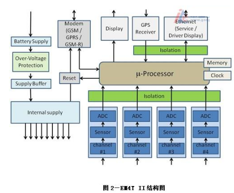可以利用串行接口從EM4T II讀取數據。從EM4T II內的數據處理系統(tǒng)中將數據提取出來然后通過通信網絡傳輸到地面系統(tǒng)。EM4T II可以配置第2個接口,確保系統(tǒng)符合任何鐵路運營商的特定要求?! ?br />