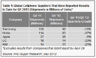 • 爾必達第一季度營業收入比2011年第四季度增長1%