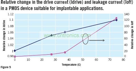 圖5:PMOS設備中漏電流與驅動電流隨溫度變化
