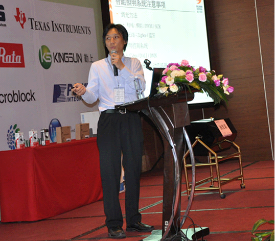 聚積科技照明產(chǎn)品總監(jiān)俞仲威帶來了《LED照明IC設(shè)計(jì)與電源模組應(yīng)用趨勢》。首先講述LED照明發(fā)展的市場,再分析LED燈管的發(fā)展,講解不同燈具對模組設(shè)計(jì)帶來的沖擊、LED應(yīng)用趨勢,最后拋出可控硅調(diào)光的議題,與現(xiàn)場聽眾進(jìn)行了探討。