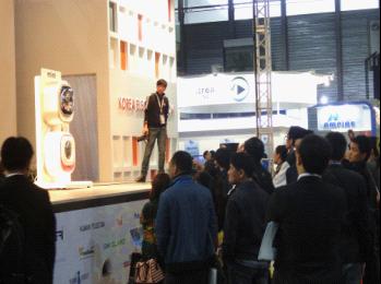 掛在墻上的洗衣機和用腦波開火車是第80屆中國電子展上極具震撼的場景,現場觀者如潮。在2012亞洲電子展的韓國大宇電子的展臺上,那些形似微波爐的產品其實是壁掛式滾筒洗衣機,雖然重量只有3公斤,但功能卻相當齊全。不遠處的展臺上,一列跑得慢吞吞的玩具火車開動起來不再依靠遙控器,而是人類的腦波。Stream TV展出的42寸裸眼3D顯示裝置,搭載了tream TV獨家的Ultra-D裸眼3D影像技術,據公司客戶經理呂昱葳介紹,任何時間,任何地點,Ultra-D技術都可以把用戶所有的電視節目甚至家庭錄影實時轉換成裸眼3D效果。