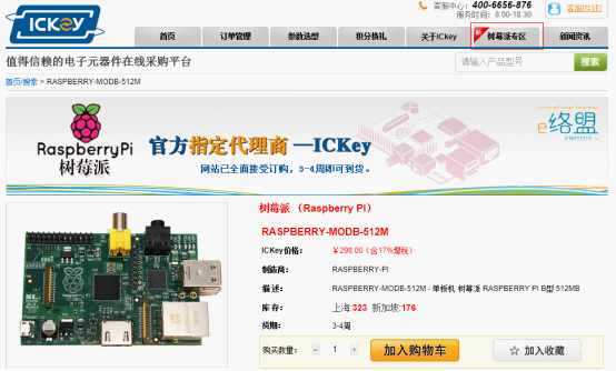 國際知名電子產品分銷商E絡盟(原派睿電子)已于近日正式授權ICKey平臺成為其“樹莓派”產品的中國區總代理,國內個人用戶即日起可通過ICKey網站直接在線訂購“樹莓派”(RASPBERRY PI B型 ,512MB)產品,準備體驗世界上最小的卡片式臺式機!