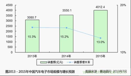 2013-2015年中國汽車電子市場規模與增長預測