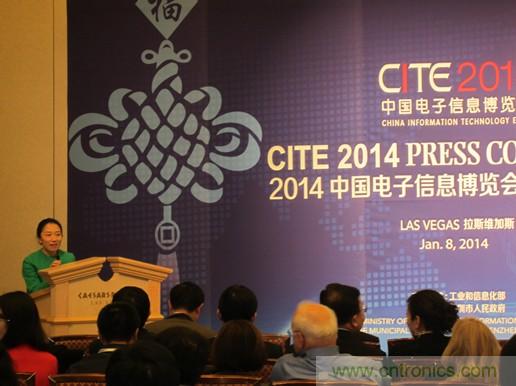 美國當地時間2014年1月8日下午,中國電子信息博覽會(CITE)組委會在拉斯維加斯CES展期間召開推介會,介紹第二屆中國電子信息博覽會(CITE 2014)及相關組織籌備情況,邀請美國及全球各地的電子信息企業、相關協會組織及專業媒體參加博覽會。