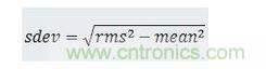 均方根(rms)和標(biāo)準(zhǔn)偏差(sdev)是密切相關(guān)的測量。rms的計算公式是: