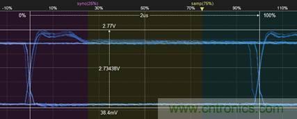 由此可見,該方法雖然可以大致測(cè)量出CAN節(jié)點(diǎn)的差分電平位信號(hào)特征,但由于其用于做分析的樣本很少,測(cè)量方式有很難操作,所以為了提高測(cè)量結(jié)果的準(zhǔn)確度,減低人工成本,文章中對(duì)測(cè)試方法進(jìn)行了改進(jìn),使用CANScope-Pro總線分析儀、CANScope-StressZ擴(kuò)展板,使用配套軟件的樣眼圖與對(duì)稱性測(cè)試進(jìn)行測(cè)量。