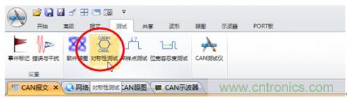 5. 為了精準(zhǔn)測(cè)試CANH+CANL的電壓值,需要使用對(duì)稱性測(cè)試功能,如圖6所示,在“測(cè)試”中點(diǎn)擊啟動(dòng)“對(duì)稱性測(cè)試”。