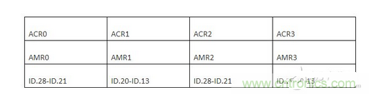 在擴展幀的雙濾波方式下,ACR0ACR1分別對應ID.28-ID.13 ,ACR2ACR3分別也對應ID.28-ID.13,這就達到了兩次濾波的效果。