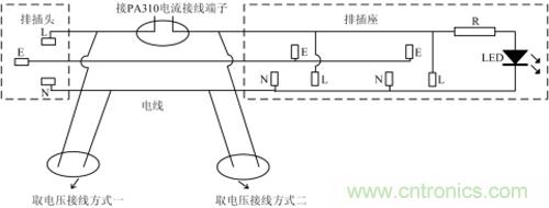 1.電源排插上是否存在LED指示燈,如果有,那么這個指示燈的電流就會被作為負載電流進行測量。排插接線如圖1所示,大多數排插都會有LED指示燈,通電后流經LED燈的電流一般為mA級,因此,對被測電流帶來誤差,尤其是測待機功耗影響更大。