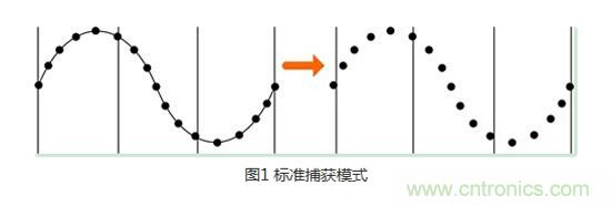 首先介紹的是標(biāo)準(zhǔn)捕獲模式,在該模式下,示波器會對采集到的信號進(jìn)行等間隔采樣。