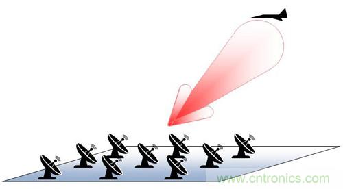 雷達陣列就是一種用于精確定位空間目標的有源天線系統。圖1中所示的簡單的3×3陣列系統能夠導引兩個維度的波束來追蹤目標。