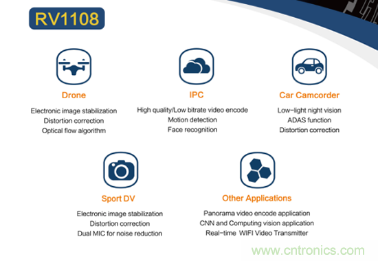 RV1108芯片是瑞芯微布局面向IoT物聯網的殺手級產品,該芯片內嵌CEVA XM4視覺處理器DSP,具有智能圖像處理等關鍵技術,最高可達600MHz。依托專業圖像處理單元技術優勢,使VR全景攝像機在寬動態、感光度、清晰度、逆光、夜視成像優勢明顯。