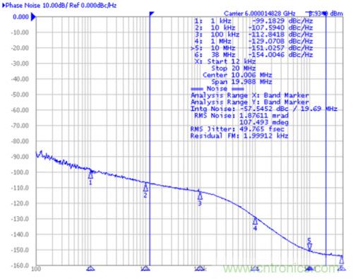 圖3:LMX2592在6GHz輸出頻率的抖動性能