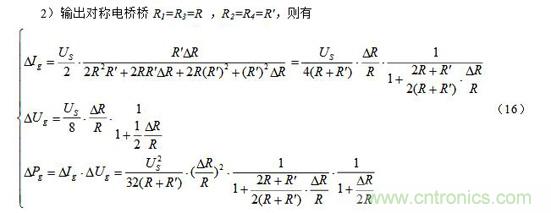 注意:上面(7)~(9)式中的R和其R′ 均為預調平衡后的電阻。此外,當電阻增量△R較小時,即滿足△R《《R時,上面(7)~(9)三式的分母中含△R項可略去,公式可得以簡化,這里從略。