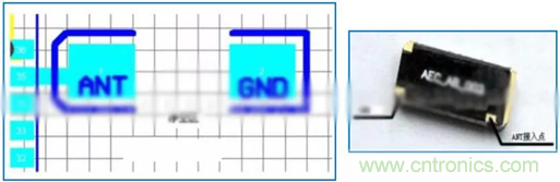 陶瓷天線是另外一種適合于藍牙裝置使用的小型化天線。陶瓷天線的種類分為塊狀陶瓷天線和多層陶瓷天線。由于陶瓷本身介電常數較PCB電路板高,所以使用陶瓷天線能有效縮小天線尺寸,在介電損耗方面,陶瓷介質也比PCB電路板的介電損失小,所以非常適合低耗電率的的藍牙模塊中使用。在 PCB設計時,天線周圍要凈空就可以了,特別注意不能敷銅。如下圖: