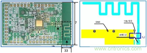 曲流型天線的長度比較難確定。長度一般比四分之一波長稍長,其長度由其幾何拓撲空間及敷地區決定。曲流型天線一般是PCB封裝,即板載天線。和倒F型一樣,天線一般放置在PCB頂層,鋪地一般放在頂層并位于天線附近,但天線周圍務必不能放置地,周圍應是凈空區。如圖2,圖3: