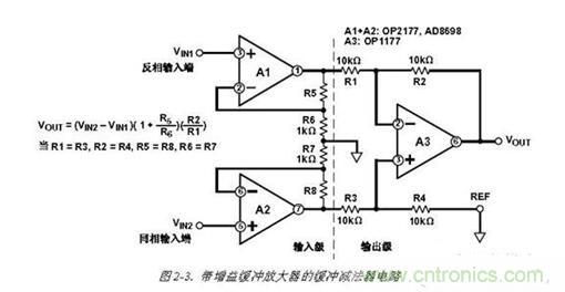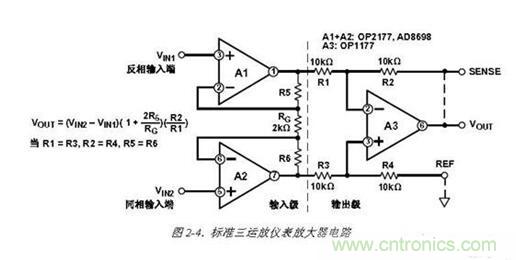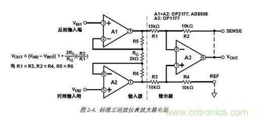 最后,由于結(jié)構(gòu)上的對(duì)稱(chēng)性,輸入放大器的共模誤差,如果它們跟蹤,將被輸出級(jí)的減法器消除。這包括諸如共模抑制隨頻率變換的誤差。上述這些特性便是這種三運(yùn)放結(jié)構(gòu)得到廣泛應(yīng)用的解釋。