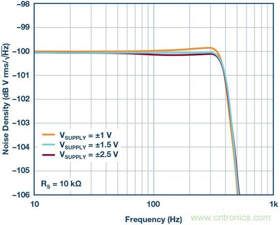 圖6. 各種電源電壓對應的輸出噪聲密度