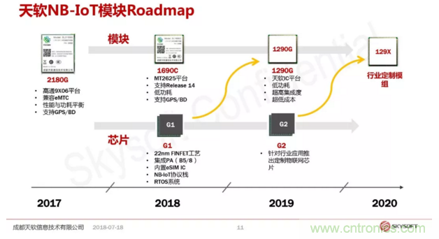 天軟信息在NB-IoT這個產業鏈上扮演的角色是要打造一個端到端的運營方案,從芯片到運營整體,黃總指出,通用設計的芯片無法滿足物聯網的特定需要,物聯網是一個海量兼容的設備,不同領域的設備有著完全不一樣的形態要求,所以提出了一個觀念叫做服務定義芯片。傳統的芯片設計行業,芯片設計商定義一個芯片是根據市場需求和發展趨勢來定義這個芯片的規格,然后交由芯片制造商去做具體的制造的工藝設計規劃,而現在的模式是把設計服務這塊獨立出來,也就是說真正了解市場,接觸這個市場對這個行業發展把握非常精準的一些公司,他們會提出來定義具體的一款芯片需求,定義出來的芯片交到以前的芯片設計公司來完成設計的服務,芯片制造商來完成這個芯片的制造,天軟信息現在正在走的就是這樣的模式。
