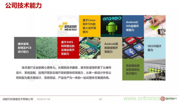 天軟信息成立于2014年,現有員工近150人,其中80%為研發人員。公司以成為全球領先的無線通信及智能產品技術提供商為愿景,致力于為物聯網及車聯網提供專業的無線通訊及智能產品解決方案。Skysoft是西部為數不多的擁有獨立綜合通信測試實驗室,并能提供LTE終端產品/模塊、無線路由器、車載通信及多媒體等軟硬件研發能力的高新技術企業。
