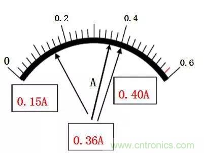 1、若是0~0.6A檔,最小分度值為0.02A,半格為0.01A,圖中讀數(shù)應(yīng)為 0.35A。