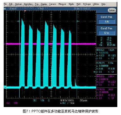 由以上的試驗證明,TE connectivity公司研發出的LVR PPTC和功率電阻集成在一起的組件既可以滿足馬達的保護時間的要求,又可以在一次完整的磨制豆漿的周期內不誤動作,達到了設計和保護要求。