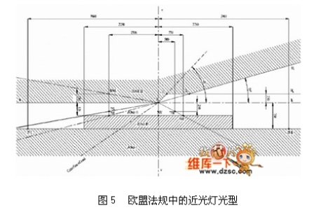 光學設計時先考慮法規需求,討論視角與強度關系,以近燈為例須針對其特殊的15度揚角設計,如圖5所示。在傳統的燈具設計上由先期的利用反射罩配合透鏡刻紋作角度與強度的控制,演變成為利用反射罩直接控制強度角度,也發展出利用成像方式的魚眼透鏡設計法。不論何種的設計方式都須先考慮選用光源的特性,特別是角度與強度的光型輸出(Beam pattern),對傳統的光源而言,大多為柱狀光源,可產生類似蝴蝶外型的光型輸出,進而發展出來與之搭配的透鏡、反射罩、擋板、透鏡等光學組件。而利用LED作為光源設計燈具時,需重新考慮其光學特性由傳統的柱狀光源變為平面光源(不同的封裝設計有不同的光型輸出),進而搭配外部的光學組件而產生不同組合以應用于不同產品,依照德國車燈大廠HELLA的設計分類,可將光源分為八大類,如圖6 所示。LED目前的單位面積發光量尚不及鹵素燈泡與放電式燈泡,想得到相同的流明輸出,LED需要較大的封裝面積。隨著光源輸出面積的增加,光學設計的難度也隨之提升,所以在現有的概念車上,都以模塊化光學設計取代既有的單一燈室設計,利用多組燈源達到傳統燈具的照明水平,除了降低光學設計的難度,也增加車體造型的設計感。