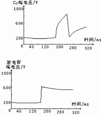 圖5 啟動瞬間電容Cc 端電壓和放電管端電壓