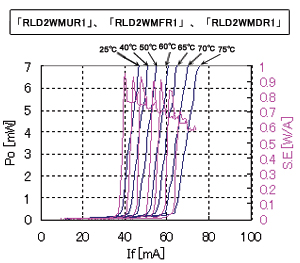 ROHM開發(fā)了新型結(jié)構(gòu)(專利申請(qǐng)中)動(dòng)作溫度保持70ºC,工作電流為70mA的優(yōu)越的溫度特性和低電流工作實(shí)現(xiàn)了自動(dòng)脈沖式雙波長激光二極管「RLD2WMUR1」,「RLD2WMFR1」,「RLD2WMDR1」。