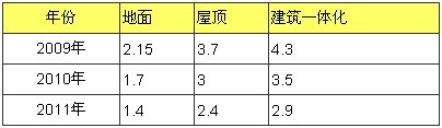 與此同時(shí)的各地政府也紛紛出臺(tái)政策刺激光伏電站的發(fā)展,杭州市提出“陽(yáng)光屋頂”計(jì)劃,廣州,南昌,無(wú)錫,保定,上海紛紛提出了本地的光伏電站發(fā)展規(guī)劃,中國(guó)光伏最發(fā)達(dá)的江蘇省率先出臺(tái)了《太陽(yáng)能光電建筑應(yīng)用財(cái)政補(bǔ)助資金管理暫行辦法》,其中規(guī)定,通過(guò)3年努力,力爭(zhēng)在全省建成光伏并網(wǎng)發(fā)電裝機(jī)容量400兆瓦,2009-2011年分年度目標(biāo)電價(jià)為: