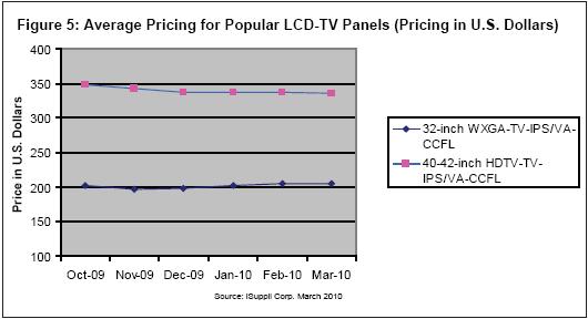 據iSuppli公司的液晶價格追蹤服務,由于2009年末價格上漲,加之中國春節期間電視銷售情況一般,電視液晶面板價格預計在3月保持不變,甚至某些大尺寸面板還會略有下降。