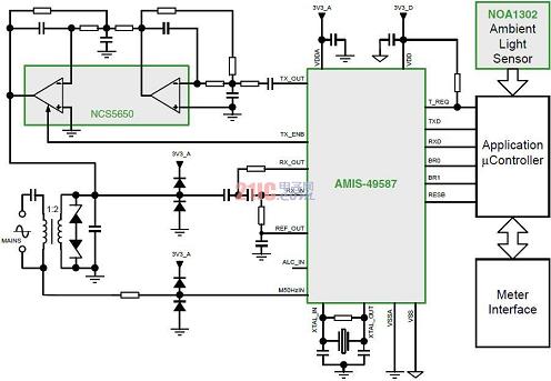 有利的是,設計人員采用安森美半導體的AMIS-49587電力線載波(PLC)調制解調器、PLC線路驅動器NCS5650和諸如NOA1302這樣的環(huán)境光傳感器,基于電力線輕易地構建聯(lián)網(wǎng)型LED街燈智能控制系統(tǒng)(參見圖4)。其中,安森美半導體的環(huán)境光傳感器包含的輸出類型,如NOA1302和NOA1305提供的是數(shù)字輸出,而NOA1211為模擬輸出。這些光傳感器的工作電流極低,在100流明光輸出條件下分別僅為58 μA、550 μA和115 μA,因而對系統(tǒng)能效的影響極小。