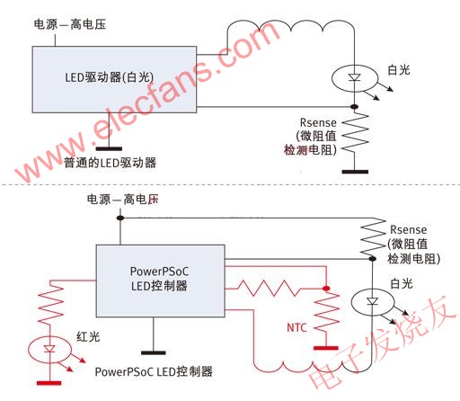 就改進操作、提高安全性而言,這兩種監(jiān)控LED燈溫度的方法實施起來都很簡單直接。圖1是使用LED作為升溫源頭的這兩種方法的原理圖。